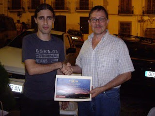 Hacia la medianoche nos dedicamos un rato a la entrega de premios y a hacer fotos para recordar el momento. En la primera aparezco (a la derecha) junto a Parlamento (organizador del concurso y uno de los moderadores del Fórum Montefrío), recogiendo el diploma acreditativo, una sorpresa que nos tenían guardada a los galardonados: